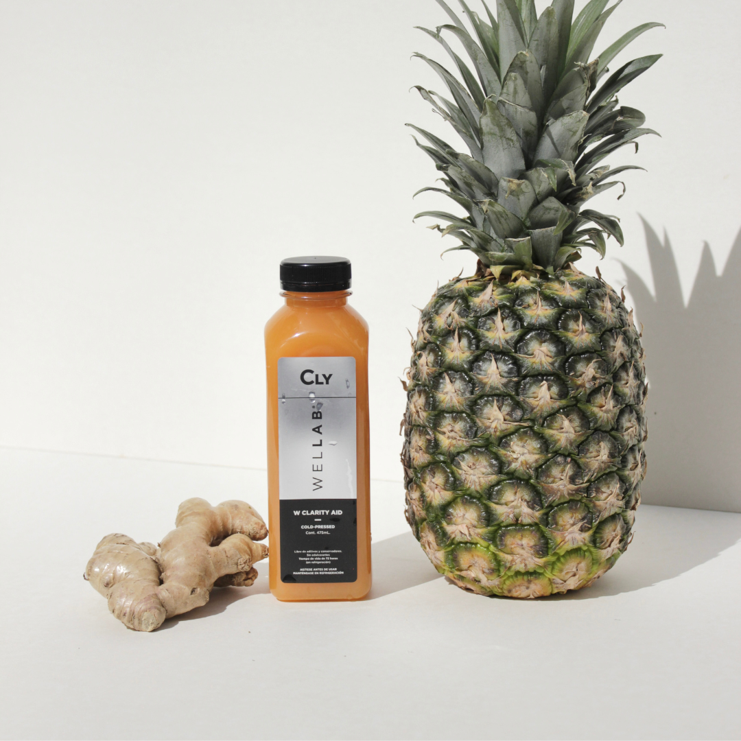 - W CLARITY AID: Manzana, piña, zanahoria, lima, jengibre y cúrcuma.